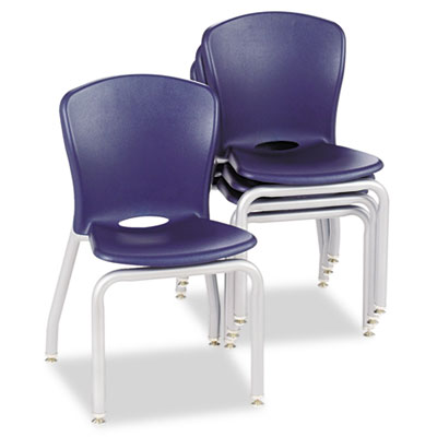 Durable polypropylene and high-density polyethylene seat and back. Built-in lumbar support for comfort. High-strength tubular steel frame with powder coated finish for long wear. Recommended Applications: General Office & Task; Seat/Back Color: Navy.