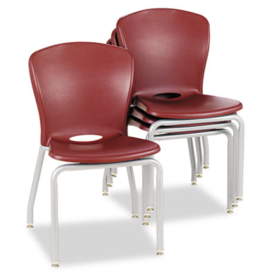 Durable polypropylene and high-density polyethylene seat and back. Built-in lumbar support for comfort. High-strength tubular steel frame with powder coated finish for long wear. Recommended Applications: General Office & Task; Seat/Back Color: Garnet.