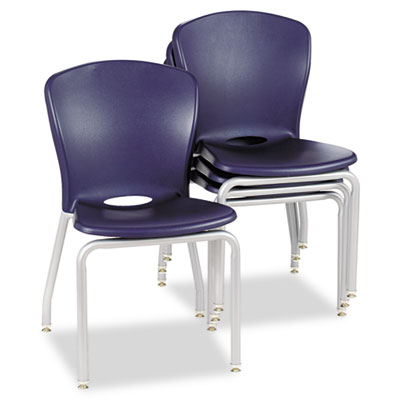 Durable polypropylene and high-density polyethylene seat and back. Built-in lumbar support for comfort. High-strength tubular steel frame with powder coated finish for long wear. Recommended Applications: General Office & Task; Seat/Back Color: Navy.