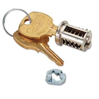 For files that have HON® “One Key” standard locks. Replaces the lock core, allowing all files to be keyed alike. Order one like-numbered kit per file. Color: Brushed Chrome.