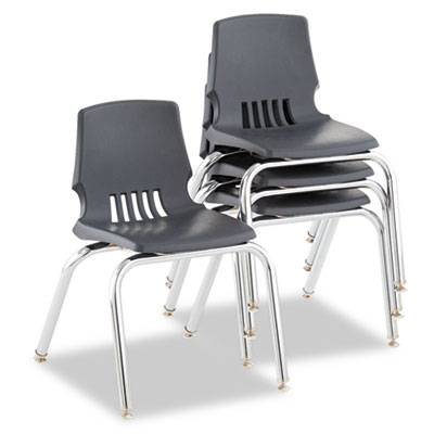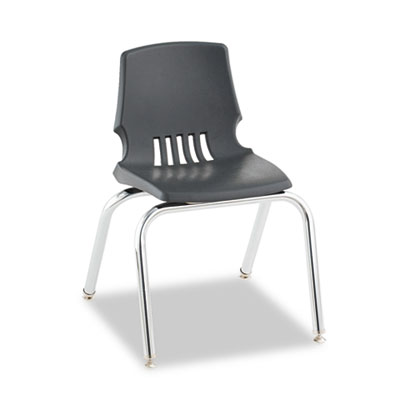 Well-constructed, economical classroom chair features a durable poly shell with a ventilated back. Attractive, four-leg chrome-plated frame is end-capped with nylon swivel glides. Stacking design enables space-efficient storage. Concealed rivet construction ensures a snag-free seating surface. Recommended Applications: Breakroom & Hospitality; Seat/Back Color: Lava.