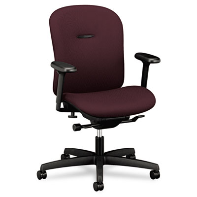 Adjustable lumbar support for exceptional comfort. Unique design allows chair to effortlessly recline with your body's natural movements. 100% polyester upholstery with Nano-Tex® provides superior stain-resistance. Height- and width-adjustable arms offer custom comfort. Five-star base with casters for easy mobility. Recommended Applications: General Office & Task; Seat/Back Color: Wine; Features & Functions: Integral Lumbar Support; Pneumatic Seat Height Adjustment; Seat Glide Mechanism; Variable Synchro-Tilt.
