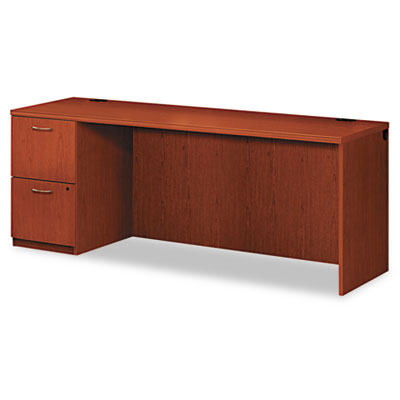 Style and prestige blended with the long-lasting, hard-working attributes of laminate. Easy-care laminate is spill-, scratch- and stain-resistant. File drawers extend fully on steel ball bearing suspensions. Hang rails included for letter or legal size filing. HON "One Key" interchangeable core removable locks. Full-height modesty panel. Color: Henna Cherry; Pedestal Count: 1; Drawer Configuration: Left: File/File.