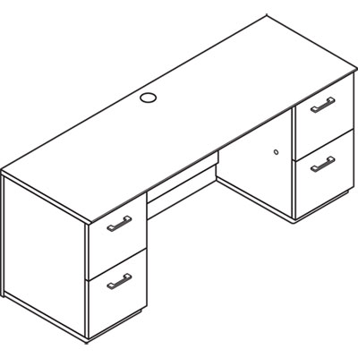 Durable hardwood veneer features a multi-step finishing process for scratch- and stain-resistance. Knife edge profile and matte chrome accents for an upscale professional look. Drawers feature core removable locks, extend fully on high-quality steel ball bearing suspensions and accommodate letter or legal size files. Cord management grommet. Removable modesty panel for easy wire routing. Adjustable leveling glides help compensate for uneven flooring. Color: Shaker Cherry; Pedestal Count: 2; Drawer Configuration: Left: File/File; Right: File/File.
