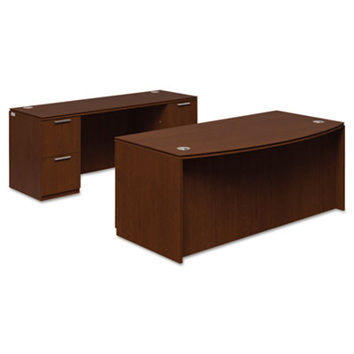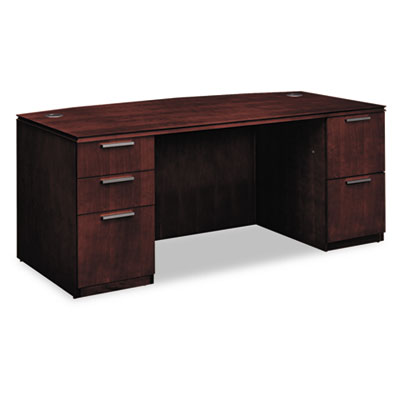 HONVW072DC1Z9FF Arrive Bow Front Double Pedestal Veneer Desk, Shaker Cherry, 72w x 36d x 29-1/2h By HON COMPANY