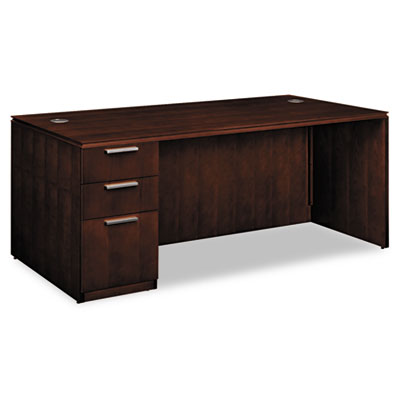 HONVW076LC1Z9FF Arrive Single Pedestal Veneer Desk, Left, Shaker Cherry, 72w x 36d x 29-1/2h By HON COMPANY