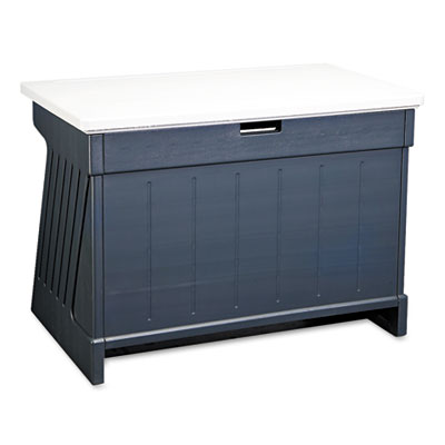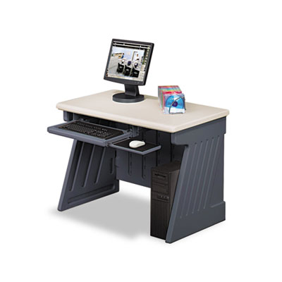 Blow molded, high-density polyethylene is lightweight and resists chips, scratches and dents. Glide-out keyboard drawer with wrist rest/storage compartment accommodates keyboards up to 20w x 8-3/4d x 3-1/8h. Mouse tray attaches to either side. Modesty panel provides privacy. Snaps together in minutes and quickly reconfigures without tools. Color: Silver; Charcoal Gray; Top Shape: Rectangular.