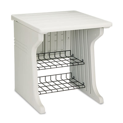 Ergonomically designed for your comfort. Durable Resinite™ construction is rustproof, dent- and scratch-resistant. Large platform accommodates dot matrix and laser printers. Easily assembles or disassembles for convenience. Color: Platinum.