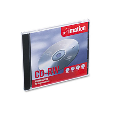IMN12381 CD-RW Disc, 700MB/80min, 4x, w/Slim Jewel Cases, Silver, 1/Pack By IMATION