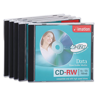 IMN16950 CD-RW Discs, 700MB/80min, 12x, w/Jewel Cases, Silver, 5/Pack By IMATION