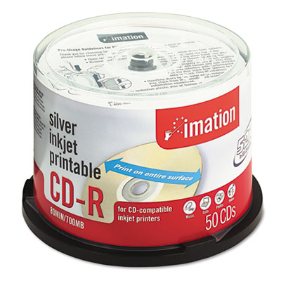 IMN17036 Printable CD-R Discs, 700MB/80min, 52x, Spindle, Silver, 50/Pack By IMATION