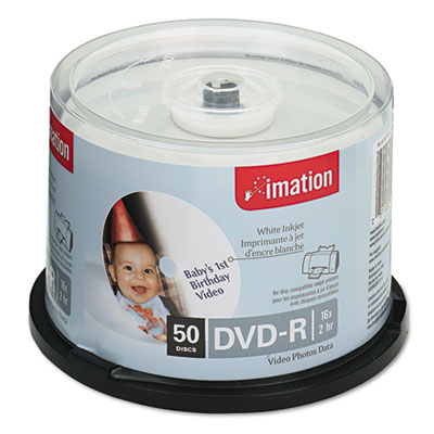 IMN17350 Inkjet Printable DVD-R Discs, 4.7GB, 16x, Spindle, White, 50/Pack By IMATION