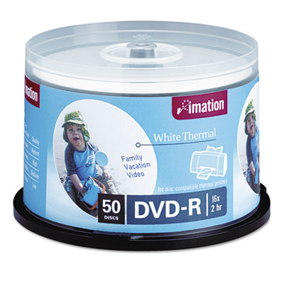 IMN17352 Thermal Printable DVD-R Discs, 4.7GB, 16x, Spindle, White, 50/Pack By IMATION