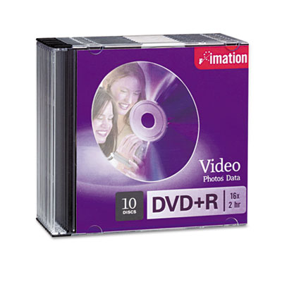 IMN17616 DVD+R Discs, 4.7GB, 16x, w/Slim Jewel Cases, Silver, 10/Pack By IMATION
