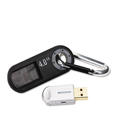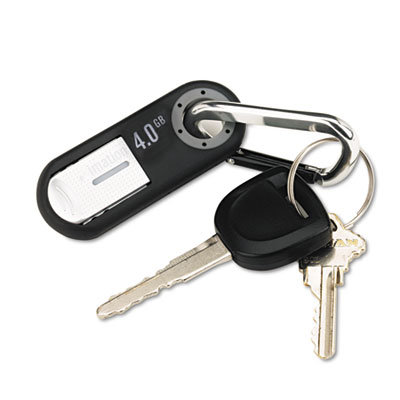 An ultra-durable carabiner clip attaches the drive quickly and easily to backpacks, shoulder bags, or belt loops. Students and business professionals will enjoy the simplicity of transferring data files, music, photos or videos. Rubberized, water-resistant case protects drive from damage. Connector/Port/Interface: USB; Storage Capacity: 4 GB; Writing Speed: 4 MBps.