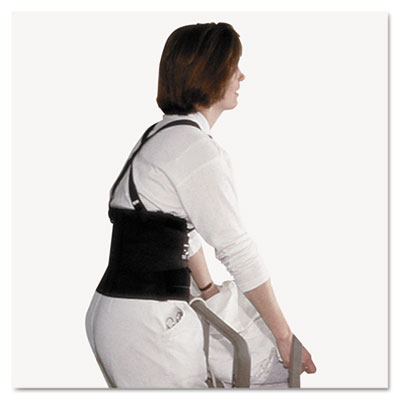Whether you're walking, squatting, lifting or turning, a hard-working back support can make the job easier and more comfortable. This single-closure back support protects the lower lumbar area, reduces the chance of back stress and injury, and encourages proper body mechanics. Retains memory for continued firm support. 7" wide back panel, 5 flexible stays for support and adjustable suspenders for customized comfort. Back Support Type: Belt; Material(s): Elastic;Nylon;Polyethylene; Width: 5".