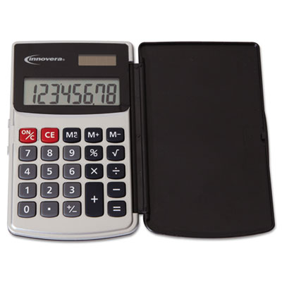 IVR15920 Handheld Calculator, Hard Flip Case, 8-Digit LCD, Dual Power, Silver By INNOVERA