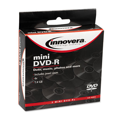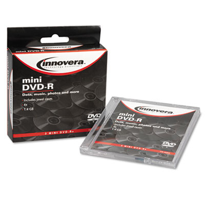 IVR46803 8cm Minidisc DVD-R, 1.4GB, 4x, w/Jewel Case, Silver, 3/Pack By INNOVERA