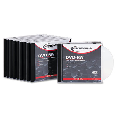 IVR46836 DVD-RW Discs, 4.7GB, 4x, w/Slim Jewel Cases, Silver, 10/Pack By INNOVERA