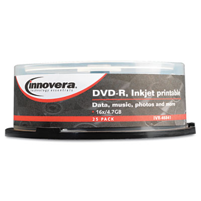 IVR46841 DVD-R Discs, Hub Printable, 4.7GB, 16x, Spindle, Matte White, 25/Pack By INNOVERA