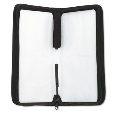 Keep your CDs and DVDs organized with this media wallet. Fabric-lined sleeves protect discs from scratches. Zippered closure provides extra security. Made of durable, moisture-resistant nylon. Capacity (text): 48 Discs.