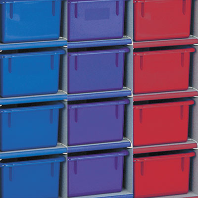 Cubbie holes are 8 3/4w x 14d x 5 1/2h. KYDZSafe® edges. Hardboard recessed backs. All storage units are 15" deep. KYDZTuff® finish. Caster mounted. Red, blue, yellow, green and orange. Color: Birch; Blue; Green; Red; Yellow; Overall Width: 57"; Overall Depth: 15".