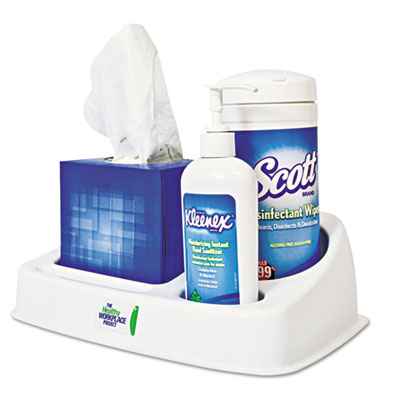 Part of The Healthy Workplace Project*, designed to prevent the spread of germs throughout your workplace. Compact caddy includes product and holds KLEENEX® Moisturizing Instant Hand Sanitizer, KLEENEX® Anti-Viral Facial Tissue and SCOTT® Disinfectant Wipes. For Use With: KLEENEX® Moisturizing Instant Hand Sanitizer, KLEENEX® Anti-Viral Facial Tissue and SCOTT® Disinfectant Wipes.; Color(s): White; Size: 11 1/4" x 8 1/8" x 8 3/4".