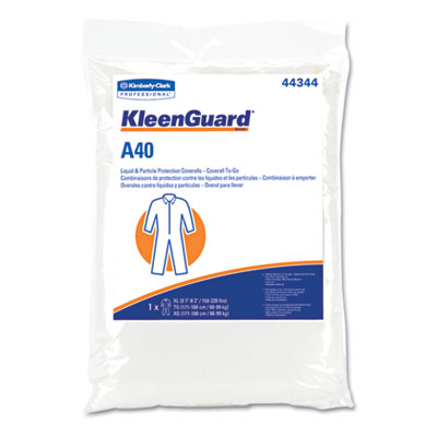 KIM44344 KLEENGUARD A40 Coverall To-Go, Microporous Film Laminate, XL, White By KIMBERLY CLARK