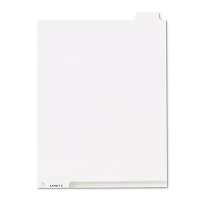 Helvetica bold type, interchangeable with Avery® style legal dividers. Exhibit numerical bottom tab laminated for extra-long life. Tab Style: 1-Tab; Tab Color(s): White; Index Divider Size: 11 x 8 1/2.