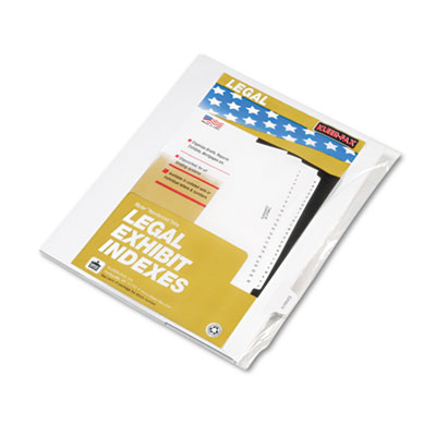 Helvetica type, interchangeable with Allstate® style dividers. Exhibit alpha side tab laminated for extra-long life. Tab Style: 1-Tab; Tab Color(s): White; Index Divider Size: 11 x 8 1/2.