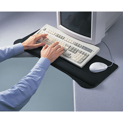 Extra cushioning helps distribute wrist pressure. Manufactured with two layers to provide extra support. Combines platform and wrist support into a single easy-to-reposition unit so you don't have to buy both. Platform design extends your desk, giving extra room for wrist support. Wrist Filling Material: Polyurethane Foam; Mouse Pad/Wrist Rest Type: Keyboard Wrist Rest; Color(s): Black.