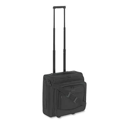 Convenient Dual-Side™ laptop compartment is accessible from right and left side. Removable padded 14 1/2w x 2 1/2d x 11 1/2h computer sleeve protects notebook. Now fits notebooks up to 15.4" widescreen. Features file organizer, multifunctional pockets and accessory case. 1680 Denier ballistic nylon. Meets airline carry-on regulations. Checkpoint friendly. Retractable handle extends up to 42" high. In-line skate wheels. For Device Type: Notebook; Material(s): Ballistic Nylon; Carrying Method: Retractable Handle.