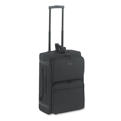 Convenient Dual-Side™ laptop compartment is accessible from right and left side. Removable padded 14 1/2w x 2 1/2d x 11 1/2h computer sleeve protects notebook. Now fits notebooks up to 15.4" widescreen. Features file organizer, multifunctional pockets and accessory case. 1680 Denier ballistic nylon. Meets airline carry-on regulations. Checkpoint friendly. Retractable handle extends up to 42" high. In-line skate wheels. For Device Type: Notebook; Material(s): Ballistic Nylon; Carrying Method: Retractable Handle.