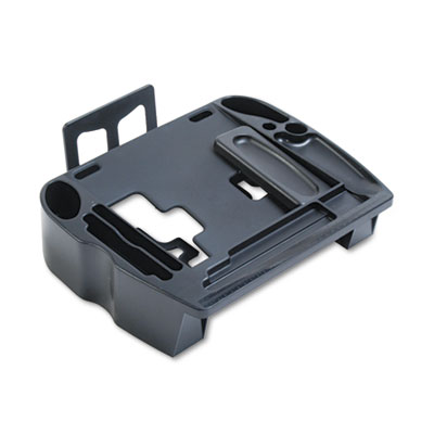 Supports phones up to 9 1/2" wide. Bi-level storage for files. Compartments for PDA, cell phone, calculator, self-stick notepads, pens and clips. Cable management controls wires and cords. Nonskid feet prevent falling off of surface. Stand Type: Telephone; Width: 14 1/4"; Depth: 11 3/4".