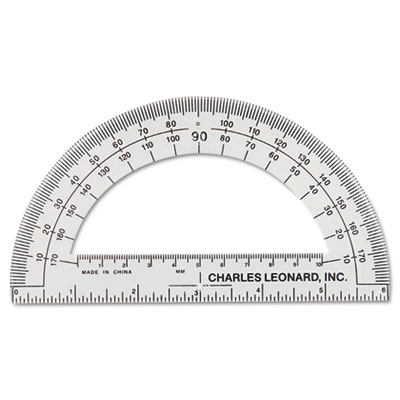 LEO77106 Open Center Protractor, Plastic, 6" Ruler Edge, Clear, 1/DZ By CHARLES LEONARD, INC