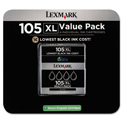 LEX14N0843 14N0843 (105XL) High-Yield Ink, 510 Page-Yield, 4/Pk, Black By LEXMARK INT'L, INC.