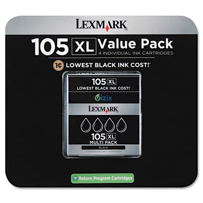 LEX14N1189 14N1189 (105XL) High-Yield Ink, 4/Pack, 600 Page-Yield, Black By LEXMARK INT'L, INC.