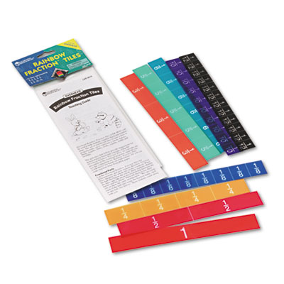 Help students visualize fractonal concepts with this set of 51 color-coded, proportional tiles. Represents wholes, halves, thirds, fourths, fifths, sixths, eighths, tenths and twelfths. Includes teacher's guide. Games/Manipulatives Type: Math Manipulatives; Age Recommendation: Grades 2-6.
