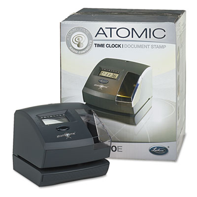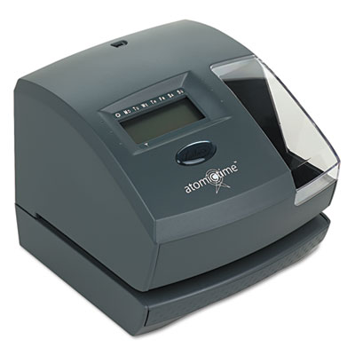 Using the same technology NASA employs to tell time, the Model 1500E wirelessly synchronizes with the National Institute of Standards and Technology's atomic clock in Boulder, Colorado. In addition to confirming the time daily, it automatically adjusts for daylight saving time. No wires, no worries and no more excuses for being late. Uses standard time cards or job cards. Never needs resetting; keeps time during power outages. Perpetual calendar until 2099; changes year, month and date automatically. Print two or four digit years. Selectable automatic or manual activation. Choose from 18 preset print formats; 13 preset messages such as RCVD, SENT, IN, OUT, FILED, PAID and more. Prints in English, French, Spanish or Portuguese. Large LCD display shows date, time and day of week. Five-year memory backup. Time Clock Type: Electronic; Imprint Style: Year, Month, Date And Time.