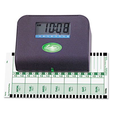 An affordable, whisper quiet, compact time recorder featuring thermal printing technology. Automatically adjusts for Daylight Saving Time, and maintains its date, time and user preferences during power failures. Tru-Align™ allows single-handed operation and provides visual and audio direction, automatically triggers an imprint when a card is properly inserted, eliminating partial over-printing in adjacent cells that can make print unreadable. Steel tough® enclosure never needs opening — printer is clean and maintenance free, with no ink pad to fill or ribbon to replace. Time Clock Type: Electronic; Imprint Style: Month, Day, Hour, Minute.