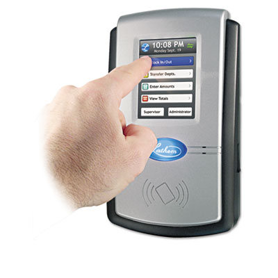 Full color, touch screen time! Automatically calculates worked hours including overtime and tracks time and attendance for 50 employees (and can be easily expanded to 1,000). Employees enter PINs or use proximity badges to punch in and out, transfer departments or enter tips and amounts. Supervisors can add employees, edit punches and message them directly at the terminal for efficient workforce management. Comprehensive payroll and attendance data can be viewed on the screen, printed to reports, sent to Excel, or exported directly into your existing payroll software. Includes Lathem's PayClock software that seamlessly integrates with your payroll software to allow for easy time and attendance management. Time Clock Type: Electronic; Number of Employees: 50-1,000.