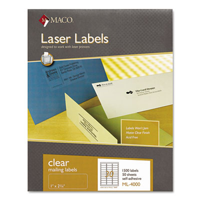 MACML4000 Matte Clear Laser Labels, 1 x 2-5/8, 1500/Box By CHARTPAK/PICKETT