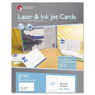 MACML8552 Microperforated Business Cards, 2 x 3 1/2, Gray, 250/Box By CHARTPAK/PICKETT