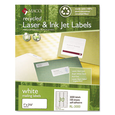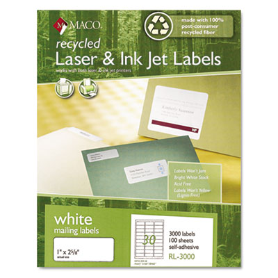 MACRL3000 Recycled Laser and InkJet Labels, 1 x 2-5/8, White, 3000/Box By CHARTPAK/PICKETT