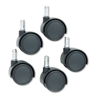 Contemporary design, strength and performance make these replacement casters an excellent choice for office and home furnishings. With appropriate stems and fasteners, each caster can be used on wood, metal and tubular metal chairs, furniture and other equipment. All casters carry the manufacturer's guarantee against defects in material and workmanship. For light to medium duty. Wheels rotate independently. Caster/Glide/Wheel: 2"; Color: Matte Black.