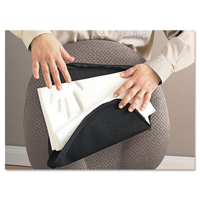 Ergonomically designed to support the spine in the proper position for seating comfort all day long. Adjust the shape and thickness of the cushion to customize comfort. Allows the spine to assume its natural "S" shaped curve. Adjusts easily for individualized comfort and support. Ideal for use in office, home, car or plane. Adjustable strap holds cushion in place. Memory Foam conforms to the body's natural curves, providing maximum relief. Back Support Type: Chair; Material(s): Memory Foam; Width: 7 1/2".