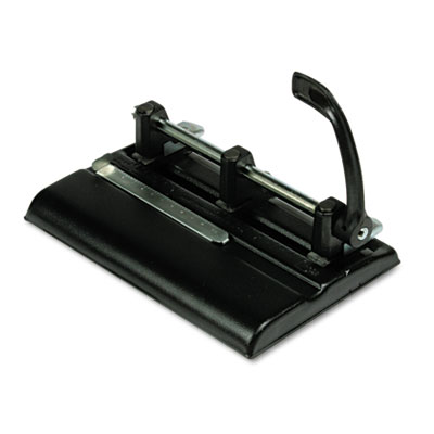 Lever handle increases leverage for easier punching no matter how big the stack. Punch heads adjust for two or three-hole punching to fit your needs. Heavy-gauge steel base; removable chip pan. Includes three punch heads, accepts up to seven heads (additional punch heads sold separately). Sheet Capacity: 40; Operating Method: Manual; Number of Holes: 2-7.