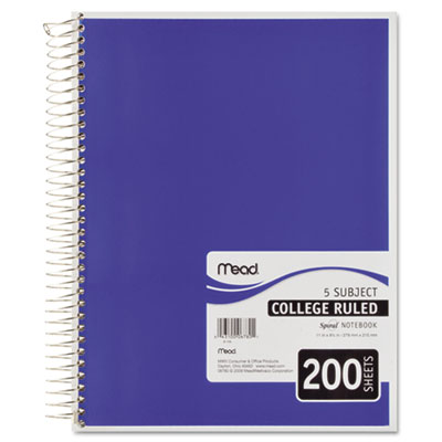 MEA06780 5 Subject Notebook, College Rule, 8-1/2 x 11, White, 200 Sheets/Pad By MEAD PRODUCTS