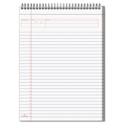 Heavyweight 20-lb. paper. Microperforated for clean tear-out. Extra-stiff backing. Spiral binding. Special numbered lines in red 1-28 on front side, 29-56 on back side. Pad Type: Notebook; Sheet Size: 8 1/2" x 11"; Ruling: Legal.