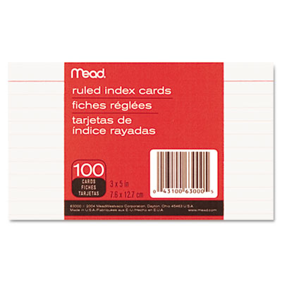 MEA63000 Index Cards, College Ruled, 3 x 5, White, 100/Pack By MEAD PRODUCTS